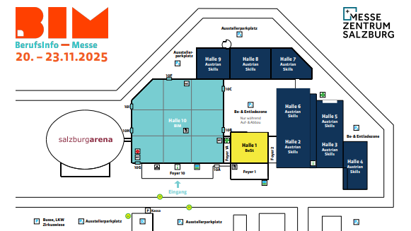 Hier finden Sie den aktuellen Hallenplan der Salzburger Berufsbildungstage: